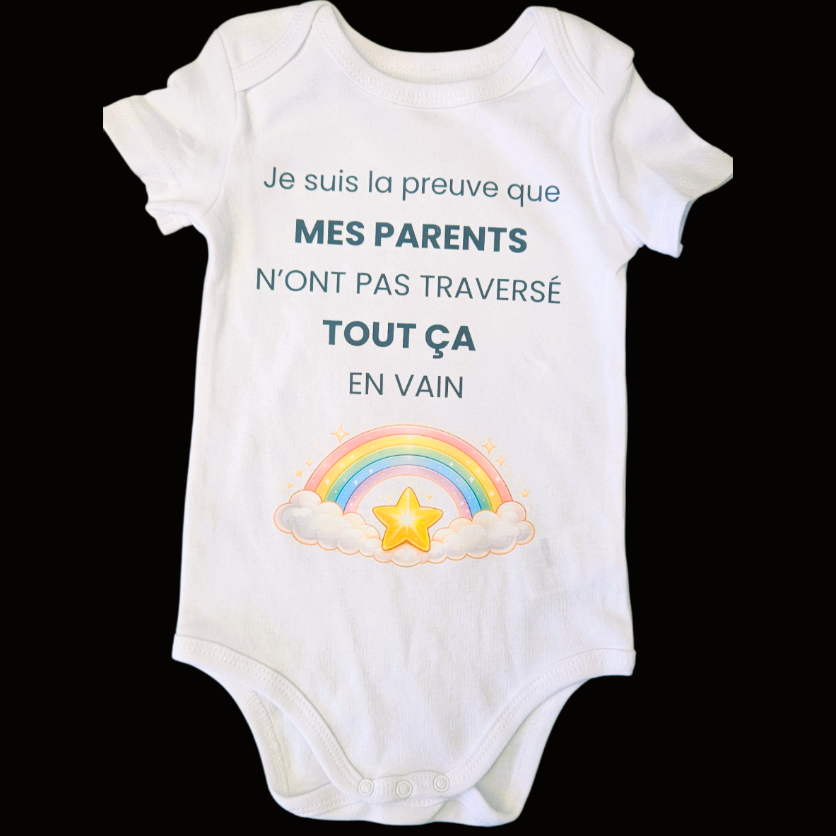 Ce body est parfait pour une annonce de grossesse touchante ou pour offrir un cadeau symbolique à l’occasion d’une naissance très attendue.