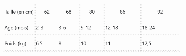 Nous disposons de 5 tailles de body proposés en manches longues et courtes :